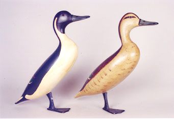 Modeled after Charles Schoenheider Sr. standing pintails. Excellent original paint. Cast metal feet. $450 pair.