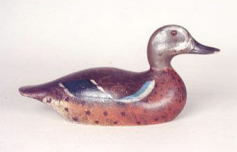 Hollow with superb bright original paint. Miniscule seam separation. Similar example in “Mason Decoys,” page 56. $15,500